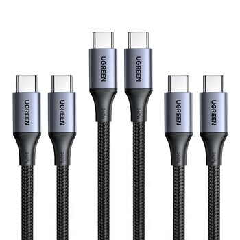 綠聯 Type-C 對 Type-C 240W 5A 安全超快充傳輸線 鋁合金編織 深空灰 (2公尺) 3件組