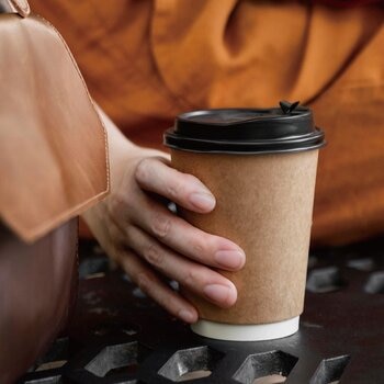 牛皮雙層紙杯 236毫升 X 1000入 + 熱杯蓋 (黑) 236毫升 X 1000入