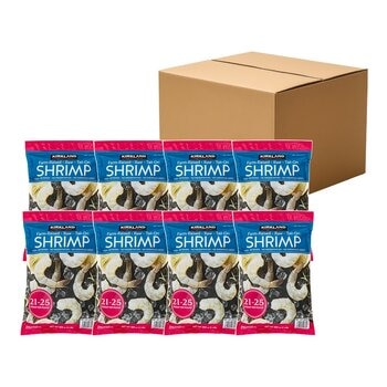 科克蘭 冷凍養殖帶尾超大生蝦仁 2磅 / 908公克 X 8包, 每磅21-25隻