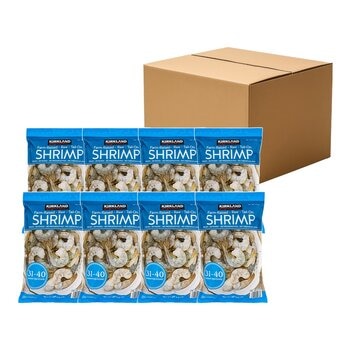 科克蘭 冷凍帶尾特大養殖生蝦仁 2磅 / 908公克 X 8包, 每磅31-40隻