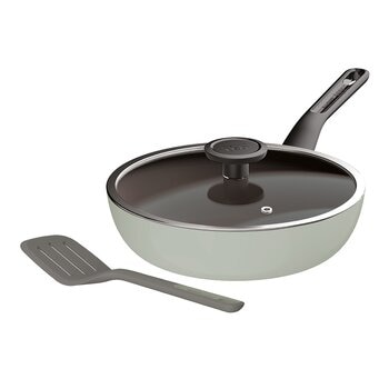 BergHOFF Glints系列 陶瓷不沾塗層單柄炒鍋 28公分含玻璃上蓋 & 鍋鏟 X 1入
